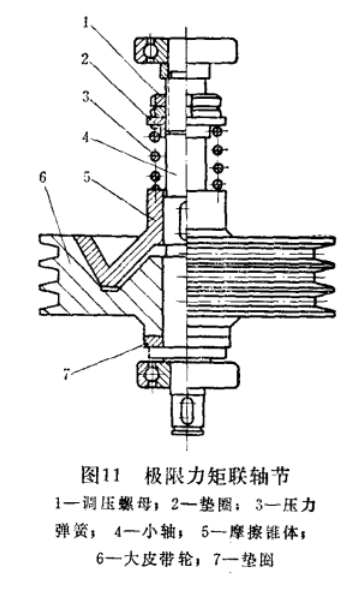 為了防止平衡吊超負(fù)荷,在傳動系統(tǒng)中需安裝力矩聯(lián)軸節(jié),其結(jié)構(gòu)如圖11所示。